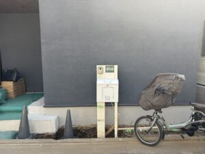 こちらは施工前の仮に取り付けたポストとインターホンです。