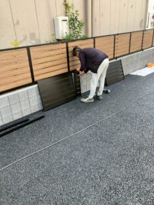 こういったフェンスはどうしても既存の寸法通りに施工できない時がありその都度、職人さんの手により