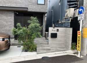 こちらの工事内容は、目隠しフェンス・駐車場土間コンクリート工事・門袖(インターホン・照明