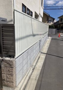 境界ブロック工事(目隠しフェンスも)施工後から変わらず綺麗なじょうたいでした。