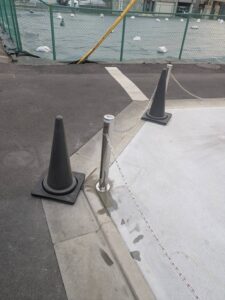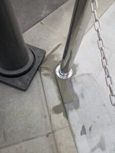 駐車場にはチェーンポールを施工しました。車が出入りする際にはポールが地面に収納できる製品です。