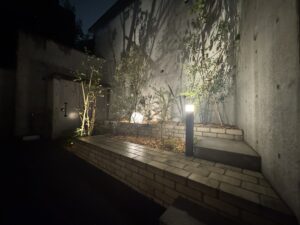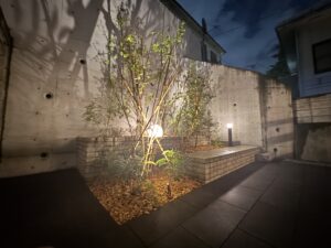 今回の外構工事において照明の素晴らしさがとてもわかる施工でした。