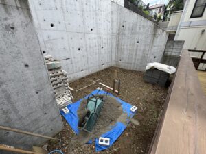 こちらの外構工事は、駐車場ガレージにRCコンクリートの施工をしており、個人宅での工事としては