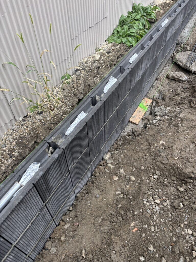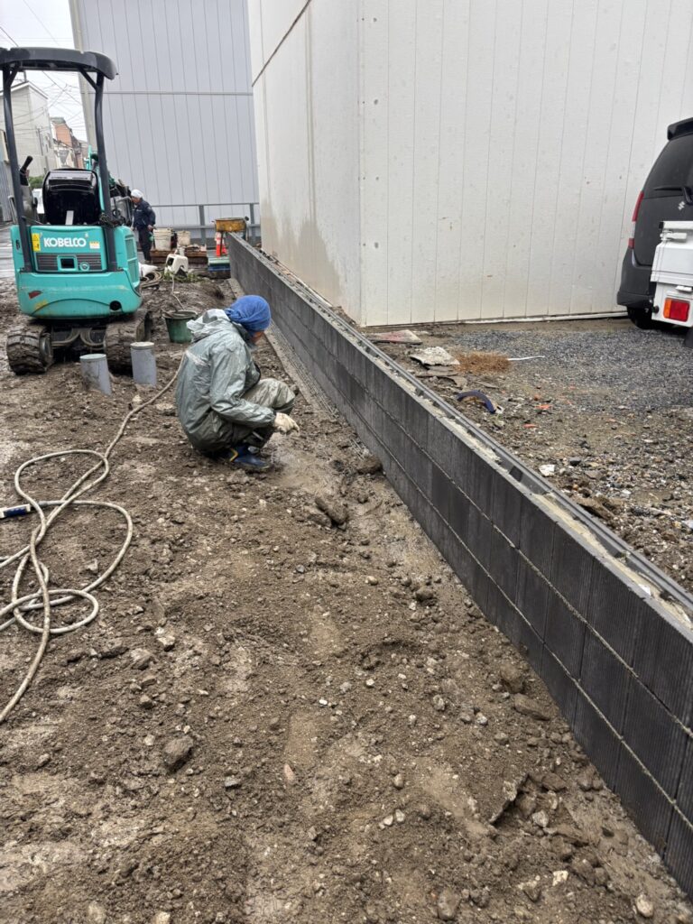 ブロック積みは一見単純な作業に見えますが、実はとても繊細な工程です💡