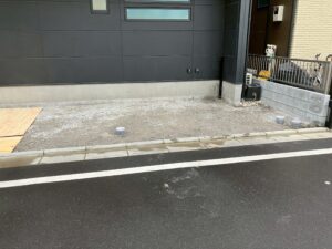 ハウスメーカーさんの施工した駐車場土間コンクリートを解体し、新たにデザインした