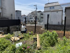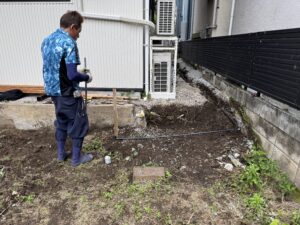 まず、お庭の目隠しフェンスの柱を立てていきます。