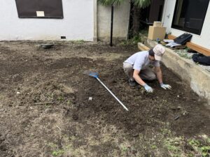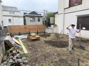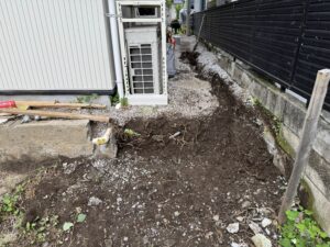 天然芝を張るので尚更、気になったので掘り返しては根を取り除き