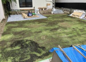 芝を張り終えました。この時も作業に夢中になり、芝張り過程の写真を撮り忘れました😭😭