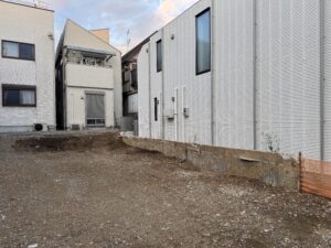 大田区S様邸です。建物が建つ前の境界ブロック工事とそれに伴う、解体工事です。
