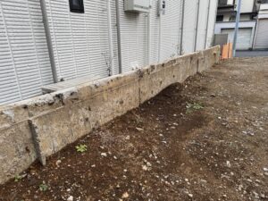 コンクリート塀の基礎まで(現状の土の高さから30センチ下まで)解体します。