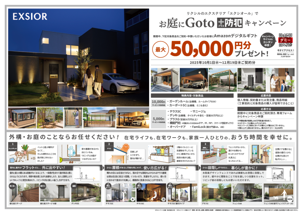 もしガーデンルーム+ウッドデッキやカーポートSC+プラスGなどご計画の方にはお得なキャンペーンです♪